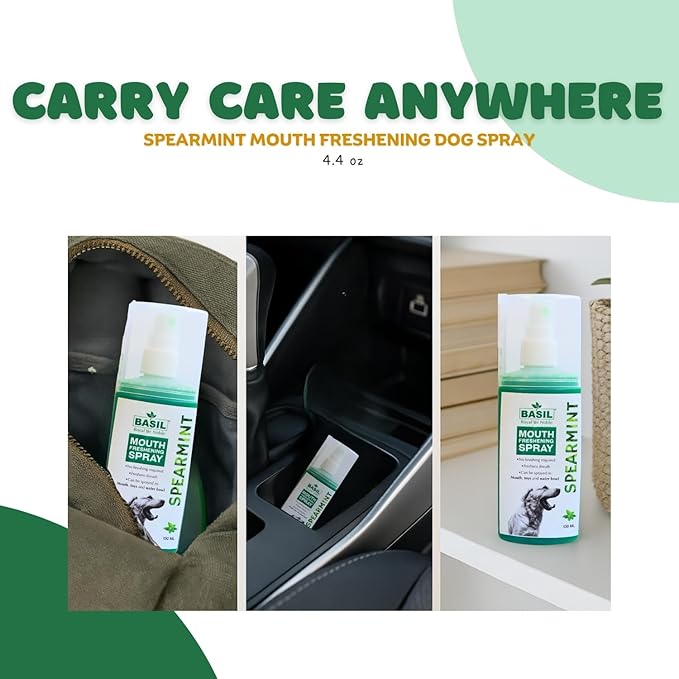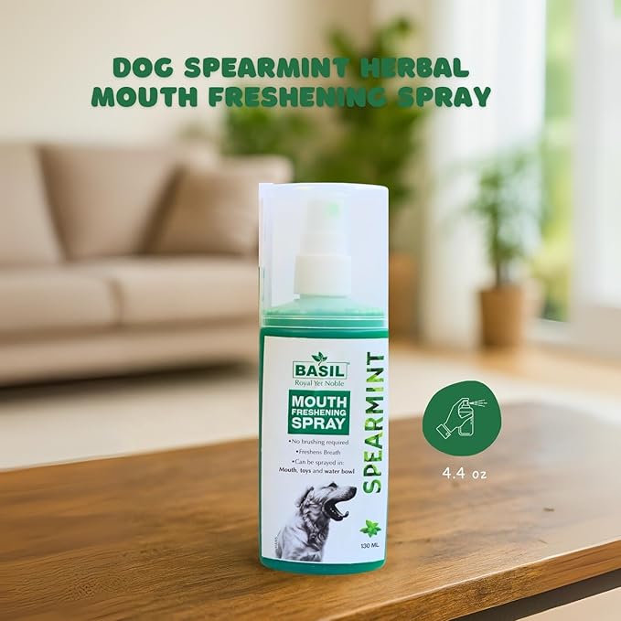- EASY DOG ORAL CARE SPRAY – BASIL Spearmint Herbal Mouth Spray is designed for simple application to your dog’s teeth and gums. Use the spray to assist in maintaining oral hygiene.