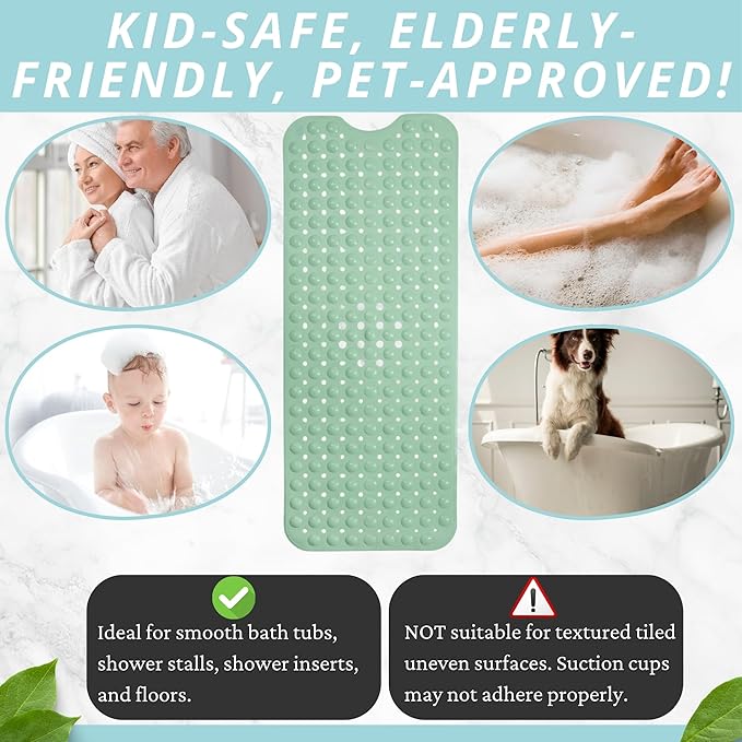 ENKOSI Bath Mat - Large Non Slip Bathtub & Shower Mat - Extra Long 40 x 16 Inch Bathroom Mats for Tub Nonslip Anti Slip Bathmats (40x16 Aqua Green 1-Pack)