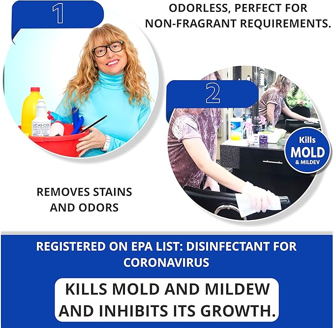 - ECO-FRIENDLY & ODORLESS: The iconic blue liquid is trusted and effective earning its reputation for creating a safe and clean salon. LUCAS-CIDE concentrate has no added dyes, VOC’s or fragrances. It is economical for use in every salon, barbershop and spa!