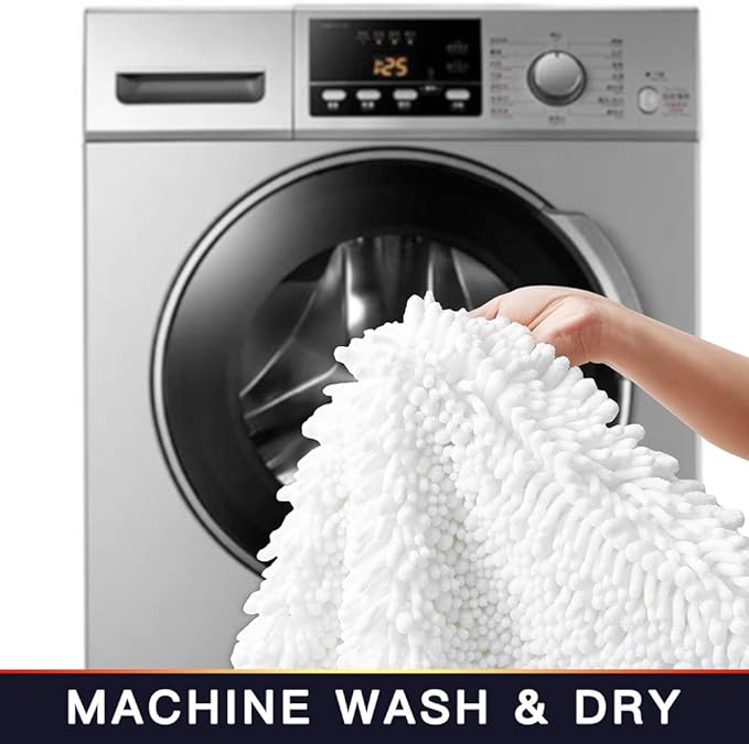 - Ultra Absorbent: The microfiber shag bath rug is much more absorbant than cotton bath rugs. High-pile chenille fabric helps save your floors from dripping water while you’re stepping out of the bath, shower, spa, or getting ready by the sink. Moisture is trapped in the mat’s deep pile, allowing the rug to dry quickly and cleanly.