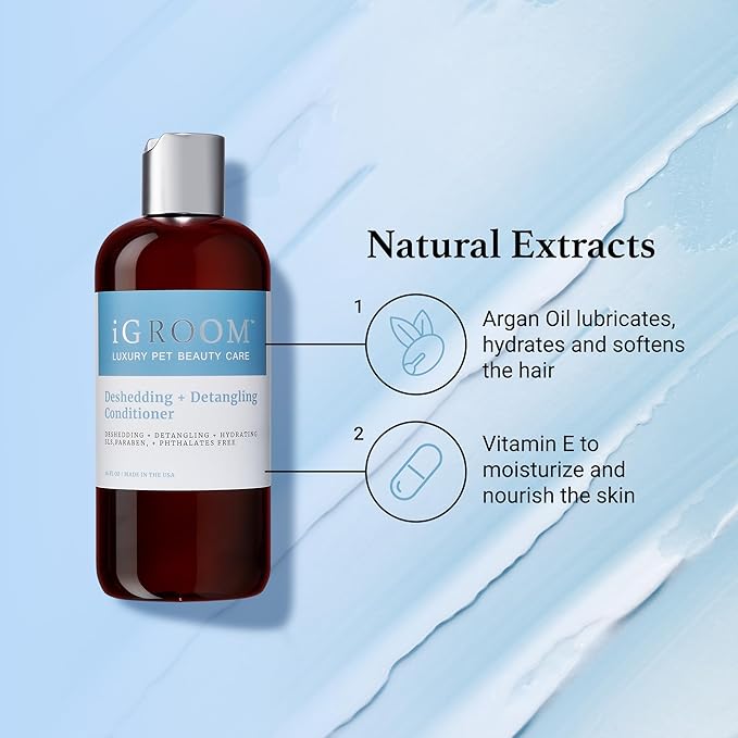 - DESHEDDING DOG CONDITIONER – use iGroom’s best-selling conditioner for maximum deshedding results. This non-greasy pet conditioner loosens tangles, shedding undercoat, and prevents new knots from appearing. Removes shedding hair when bathing, drying, and brushing. Leaves the coat looking, feeling, and smelling amazing. Scented with iGroom Mango perfume. For the best results begin with iGroom Deshedding + Detangling Shampoo.