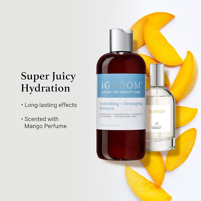 - DESHEDDING DOG SHAMPOO – loosen tangles, shedding undercoat, and prevent new tangles from forming with iGroom’s best-selling pet shampoo. Scented with iGroom Mango perfume. For maximum results follow with iGroom Deshedding + Detangling Conditioner.