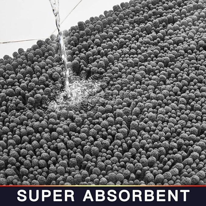 Walensee Bathroom Rug Non Slip Bath Mat (36x24 Inch Grey) Water Absorbent Super Soft Shaggy Chenille Machine Washable Dry Extra Thick Perfect Absorbant Best Large Plush Carpet for Shower Floor