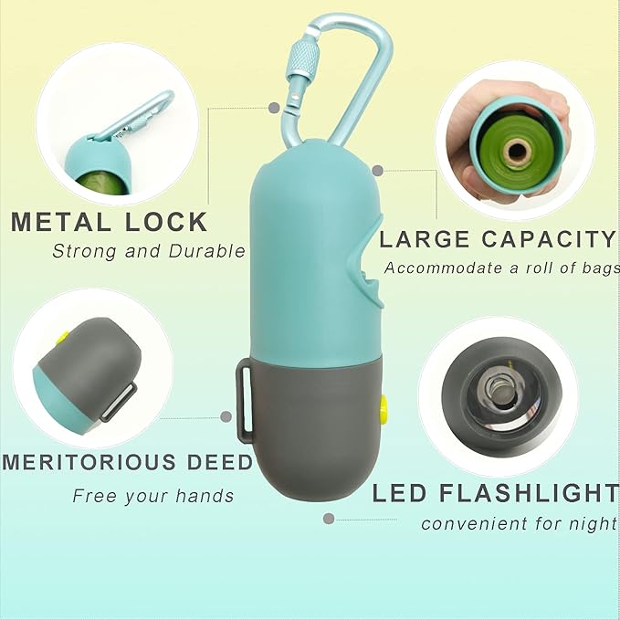 - Bright light:With bright Led light the poop bag dispenser is suitable as dog walking accessories flashlight for dog leash in the dark,you can have a leisure time when walking your dogs at night,pick up dog poop conveniently and never need to worry about stepping on dog poops any more