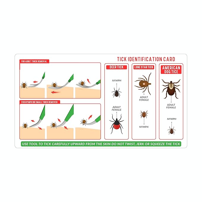 - Complete Tick Removal Kit – Includes stainless steel tick remover tool, precision tweezers, a durable leather case, and a handy tick identification card for easy and safe use anywhere.