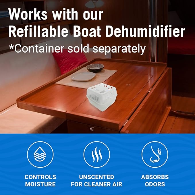 - REFILL BAGS ABSORB & TRAP EXCESS MOISTURE: Our dehumidifier absorber eliminates water from the air to keep things dry and fresh. Gets rid of unwanted smells and control moisture for a damp boat cabin and other spaces that need humidity control.