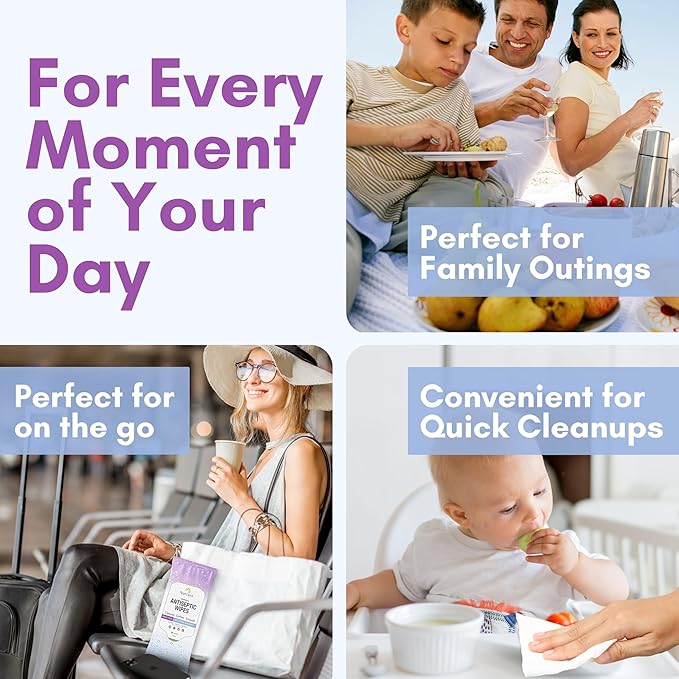 - Available In Individually Wrapped Packs: they’re the perfect wipe for travel and on-the-go use. Choose from our 60-count bulk size or 10-count mini size—portable enough to fit in your first aid kit!