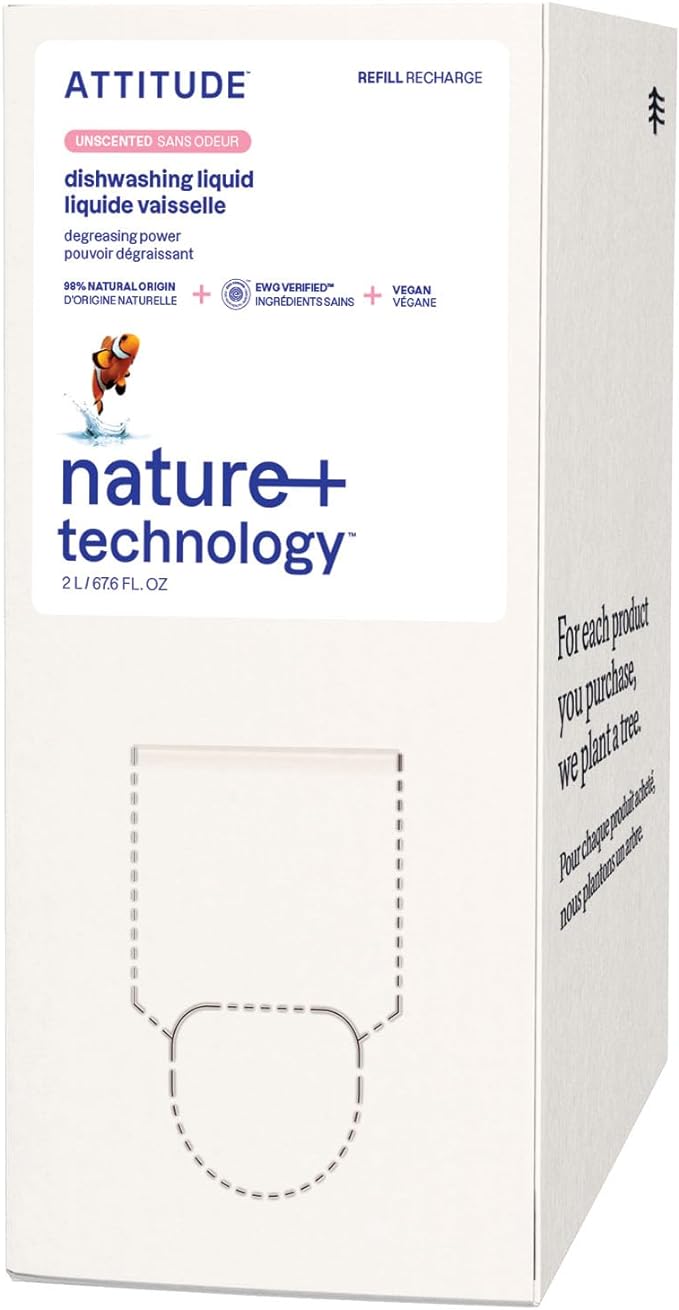 ATTITUDE Dish Soap Refill, EWG Verified, Plant-Based & Vegan Dishwashing Liquid, Naturally Derived, Unscented, 67.6 Fl Oz