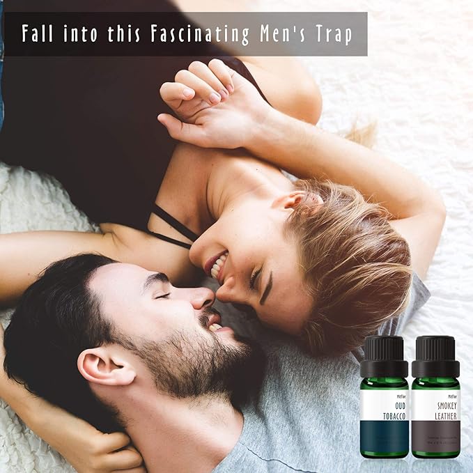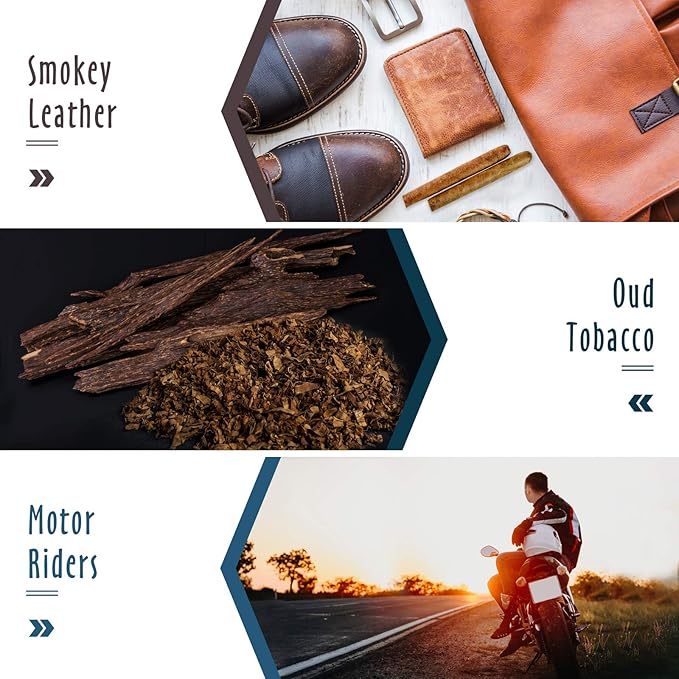 - Scented oils include: Spice Bomb, Oud Tobacco, Santal Rosewood, Patchouli & Cedarwood, Smokey Leather, and Motor Rider, each fragrance oils is 10ml and with an insert dropper for easy use