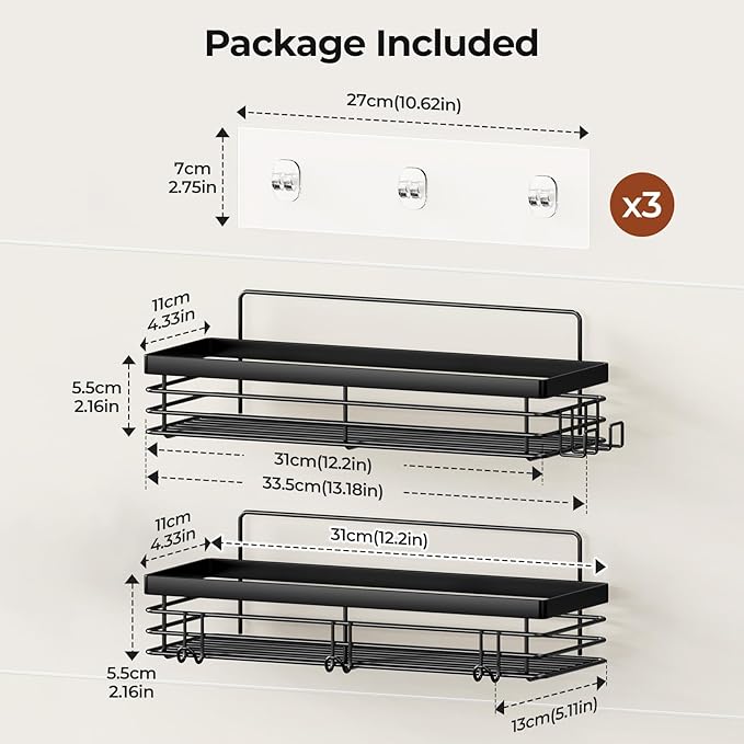 - What You Get: 2 x Shower Caddy, 3 x Adhesive, 1 x Manual, 100% satisfaction customer service!