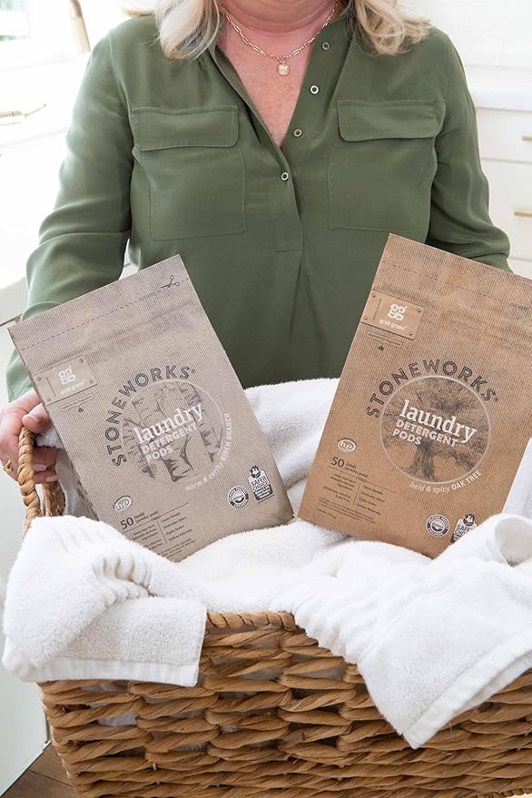 Grab Green Stoneworks Laundry Detergent Pods and Dryer Sheet Bundle, 50 Count Pods and 80 Dryer Sheets, Oak Tree Scent, Plant and Mineral Based Laundry Care Set