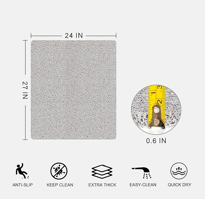 - 【Sizes & Colors】This bath mat for tub non slip is size-24x27" & color-Light Gray. You can also cut the mat to any size and shape you want or need. Show your creation now! And we also offer many other sizes colors and patterns. Whether your bathroom is Nordic, modern or pastoral, it's easy to find a bathroom mat to match. Add a touch of unique style to your bathroom!