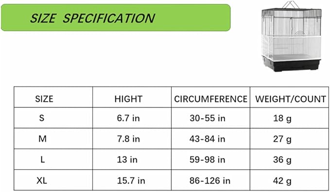 - ✿SIZE. Circumference: About 59-98 in; Height: About 13 in. For meetting everyone’s needs, we have newly launched an bird cage skirt extra large. In order to give you a better shopping experience, please check the size of your birdcage before you place an order.