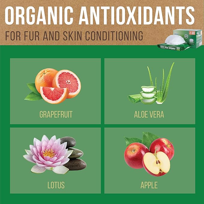 Inspire Naturals Pet Wipes for Dogs and Cats 100% Natural Plant Based with Organic Antioxidants, Dog Wipe Cleaning Deodorizing | Cat Wipes | Puppy Wipes | Dog Wipes for Paws and Butt (50ct - 1 Pack)