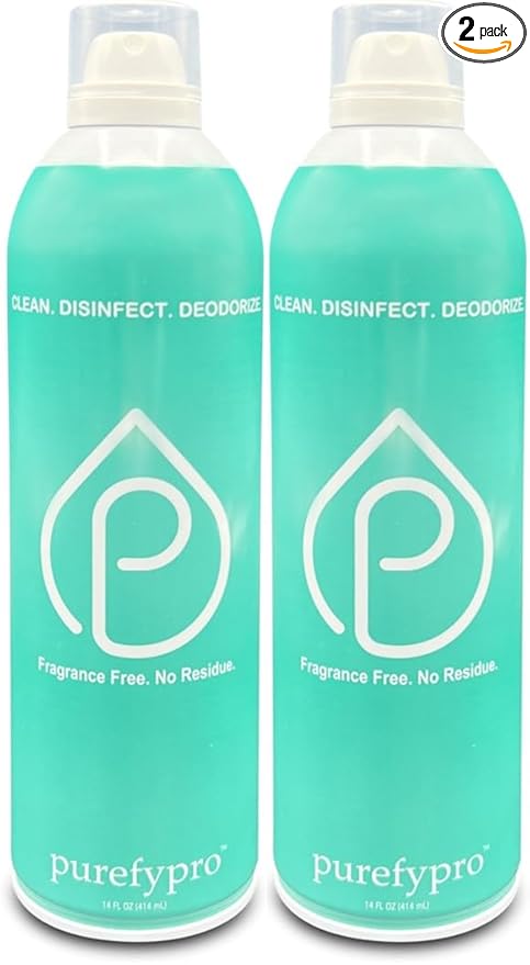 Purefypro Disinfectant Airesol Spray (14oz, 2 Pack) Eliminate 99.9999% Norovirus, HIV, Hepatitis, Flu, Monkeypox Viruses, MRSA, VRE, E Coli, Fungi. No Residue. No Rinse. Suitable for All Surfaces.