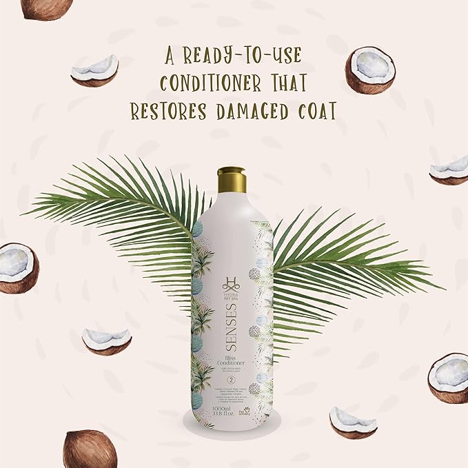 Hydra Senses Bliss Conditioner for Dogs and Cats, Coconut Water and Almond Oil Cat and Dog Conditioner, Moisturizes and Repairs Damaged Coats