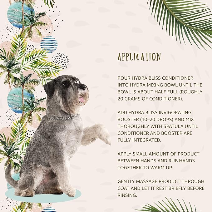 - USAGE & APPLICATION: Pour 20 grams of conditioner into mixing bowl, filling about halfway. Add 10–20 drops of Hydra Bliss Invigorating Booster and mix thoroughly. Apply mixture to coat and massage through. Let it rest for 60–90 seconds and then rinse.