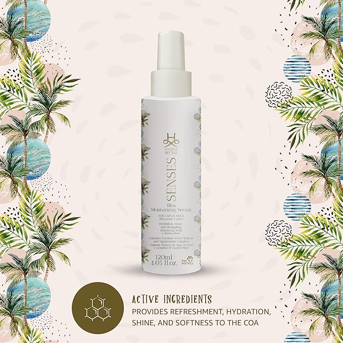 Hydra Senses Bliss Moisturizing Serum for Pets, Hydrating Cat and Dog Spray, Pet Detangling Spray for a Soft and Shiny Coat