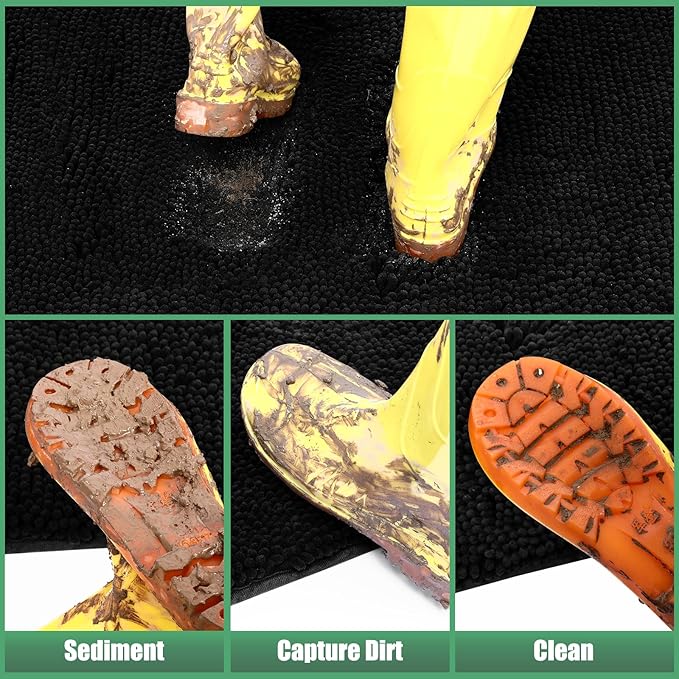 - 【Powerful Dirt Scraping and Moisture Locking】 This chenille doormat outperforms ordinary options in trapping dirt and moisture, stopping tracked-in mud, rainwater, and debris from ruining your floors. It shines even brighter in winter! Step on doormat, and the textured, dense surface instantly scrapes off dirt and snow from shoe soles, while absorbent fibers lock in moisture. Melting snow from boots is soaked up immediately—no slush puddles or slippery spots for kids, pets, or elders.