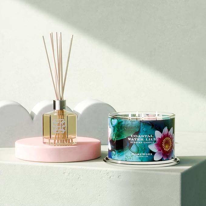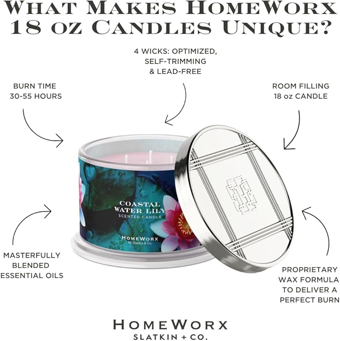 HomeWorx by SLATKIN + CO. Candle- Coastal Water Lily, 18 oz. Premium Scented Candle - 30-55 Hours Burn Time