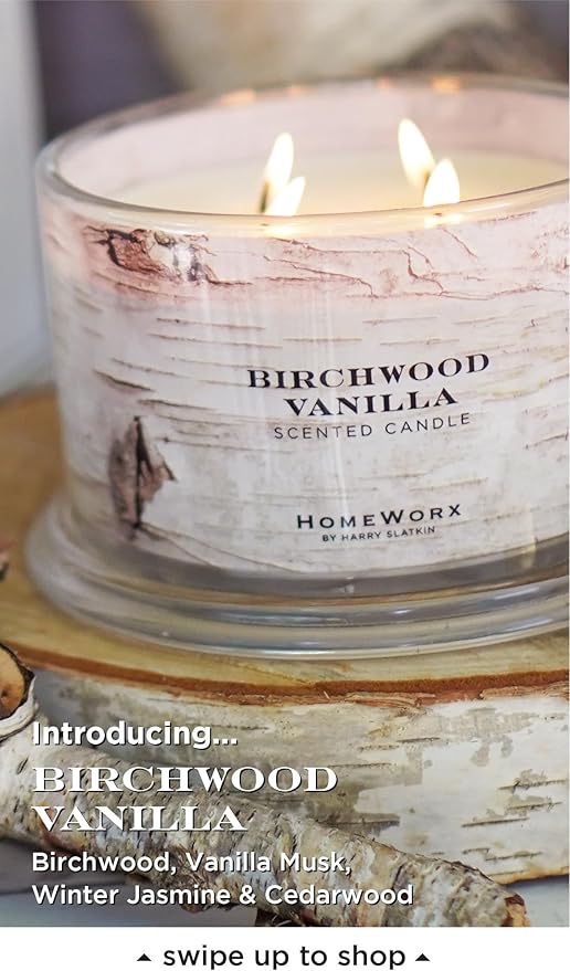 HomeWorx by Slatkin & Co - Birchwood Vanilla - Premium Scented 18oz 4 Wick Candle - Long-Lasting Jar Candle, 30-55 Hours Clean Burn Time - Birchwood, Vanilla, Jasmine, & Cedarwood
