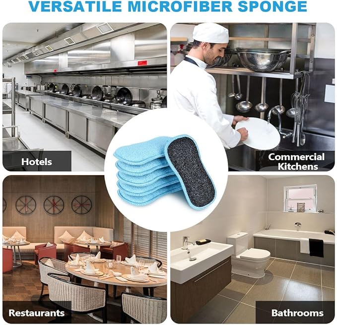 HOMEXCEL 12 Pack Multi-Purpose Scrub Sponges Kitchen, Dish Sponge, Non-Scratch Microfiber Sponge for Efficiently Cleaning Dishes, Pots, and Pans (Blue)