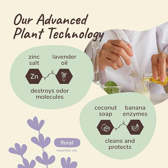 - LAVENDER ESSENTIAL OILS: natural fresh and floral fragrance given by the lavender essential oils. Natural formula without harsh chemicals. Enjoy the long lasting freshness of our pet stain and odor remover spray formulated for fabric and carpets.