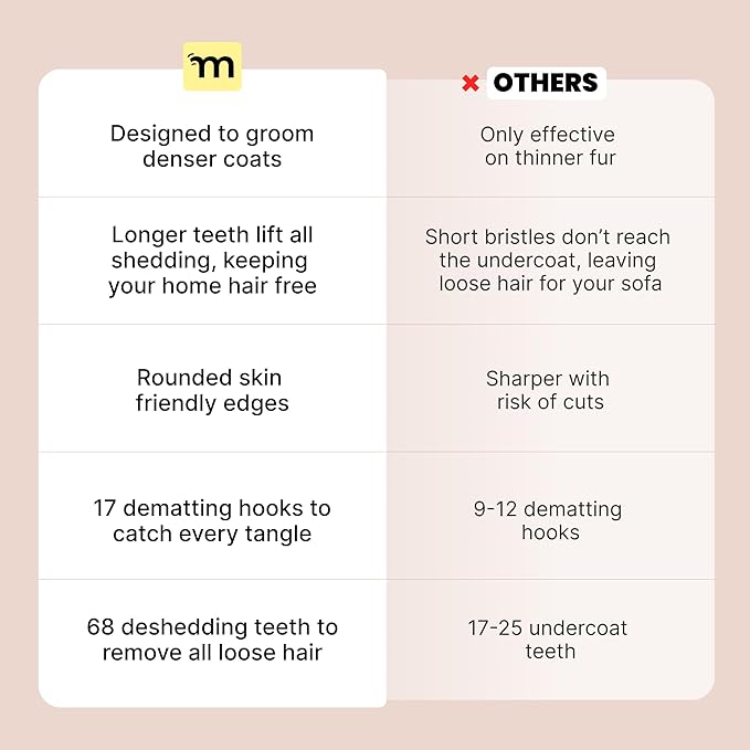 - Double-Coat Tamer: Tackle your dog's undercoat with ease using the undercoat rake dog brush. It's a must-have for pet parents with German Shepherds or Golden Retrievers who struggle with dog shedding