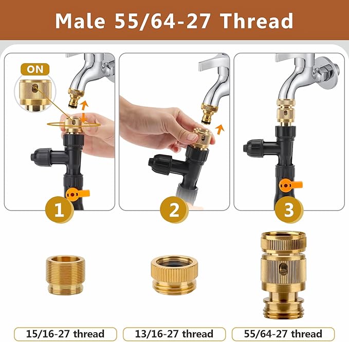- Fits for most faucets: build-in 3 size metal adapters that can fits female 15/16-27 thread, 13/16-27 thread or a male 55/64-27 thread, constructed with on/off valve, the valve on the faucet pump can be control water flow direction. The valve on the gravel tube can be adjusted total water flow