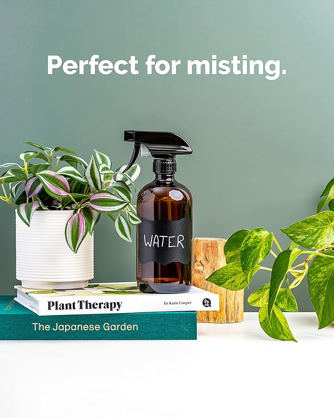 Vine Creations Amber Glass Spray Bottles, 2 Pack Glass Refillable Bottles for Cleaning solutions, 16 oz Spray Bottle for Cleaning, Mister Spray Bottle, Amber Spray Bottles with Waterproof Labels