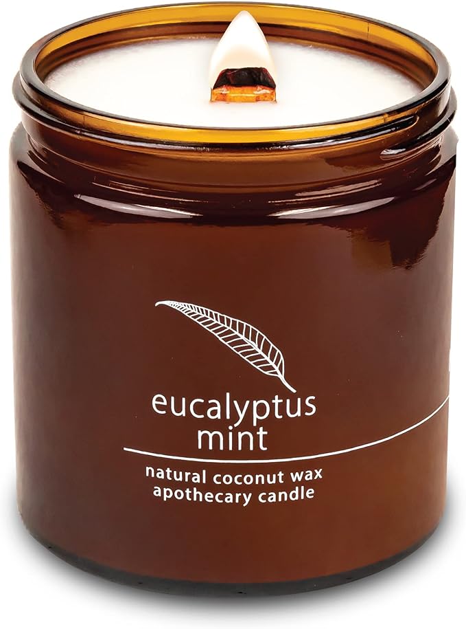 Hemlock Park Crackling Wood Wick Candle Handcrafted with Natural Coconut Wax (Large 16 oz, Eucalyptus Mint)