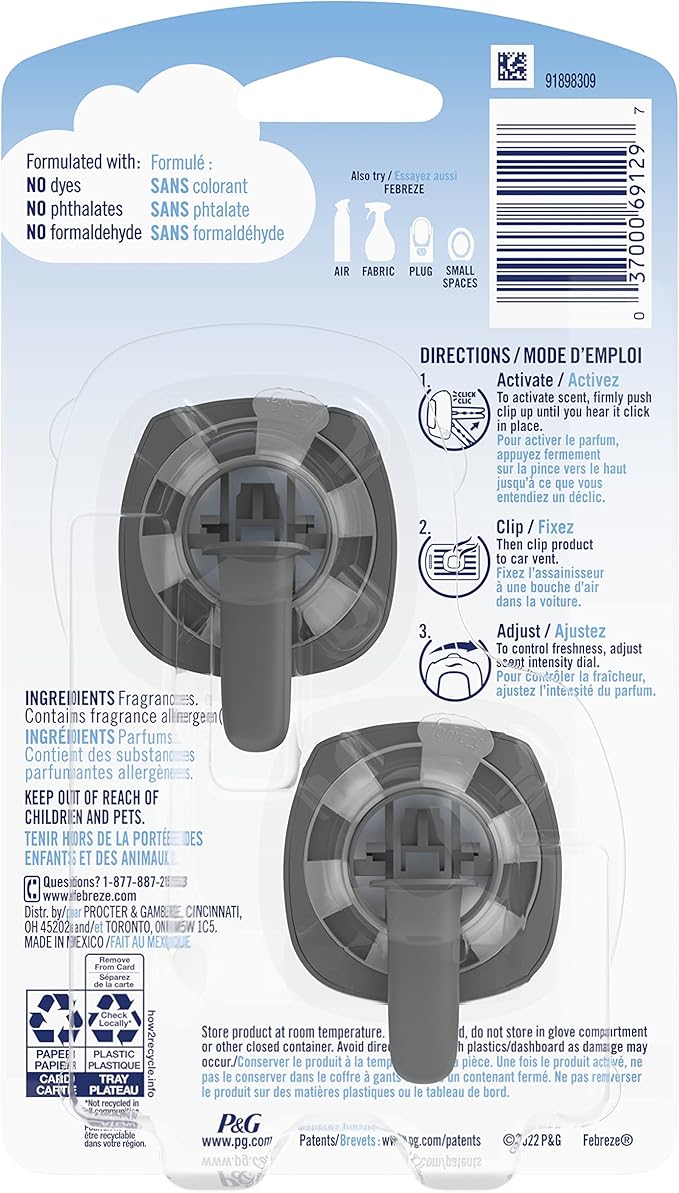 Febreze Vent Clip Car Air Freshener, Odor Eliminator, Watermelon Scent, 2 CLIPS
