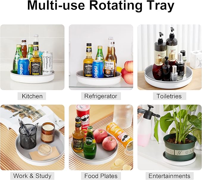 - [Package Includes] 5 Microfiber cleaning cloths(10" x 10") come with 1 Large(12"x 12"x 2") and 1 Small(10"x 10"x 2") lazy susans helping you with extra household organization. These lazy susans are water-proof and strong Load-bearing, make your life more tidy