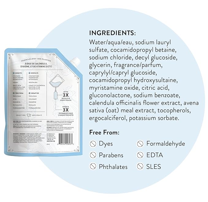 - CRAFTED CLEAN: Your go-to bathroom hand soap or kitchen hand soap shouldn't be harmful to your skin. That's why we believe in creating high-quality products with ingredients from sources that work even with sensitive skin with no parabens, dyes, or phthalates.