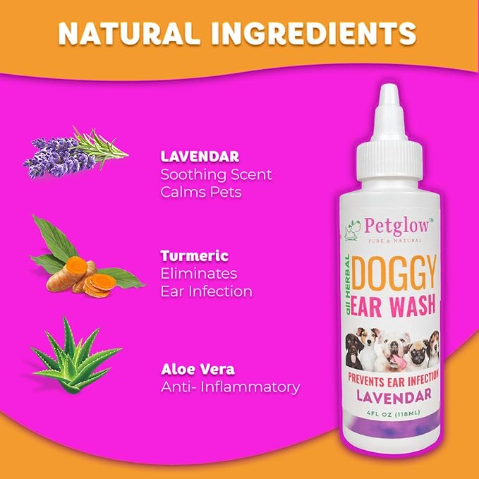 Petglow Dog Ear Cleaner, Gentle Wax Remover, Gentle Ear Cleaning Drops, Effective Ear Drops for Itch, Odor, Aloe Vera and Turmeric Ear Cleaning Solution for Dogs, Cruelty-Free