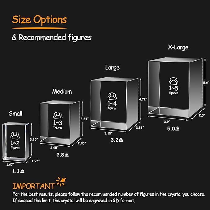 - 【Impressive 3D model sculpting and laser engraving】Our team of professional designers and technology experts utilize their artistic expertise to create impressive 3D model sculptures and laser engravings, ensuring that the surface of your crystal remains smooth, while your detailed pictures appear to magically "float" inside.