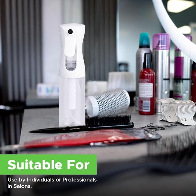 - 360° Fine Mist Sprayer: Easily reach every angle with our continuous spray bottle. Just a gentle squeeze releases a smooth, long-lasting mist—perfect for evenly coating hair, plants, or surfaces.