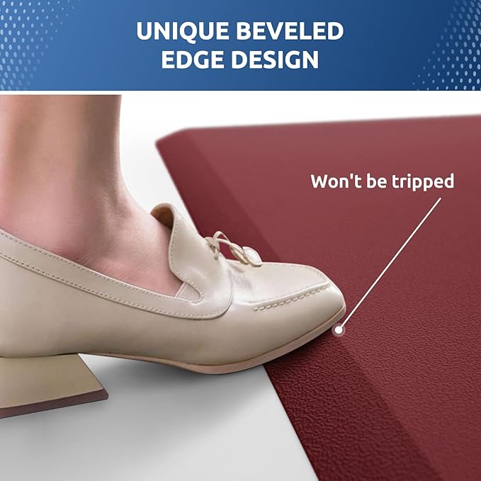 - Safety Design: the diamond-shaped design on the bottom of anti fatigue mats keeps the mat in place and prevents slippage; the bevel edge reduces the risk of tripping on the mat