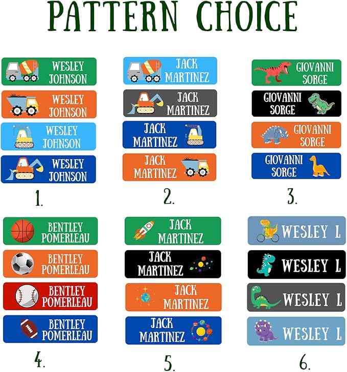 128 Custom Waterproof Dishwasher Safe Kid Name Labels for Daycare, School Supply, Baby Bottles, Lunch Boxes and Cups, Travel. Cute Personalized Design Name Stickers (Pattern 10)