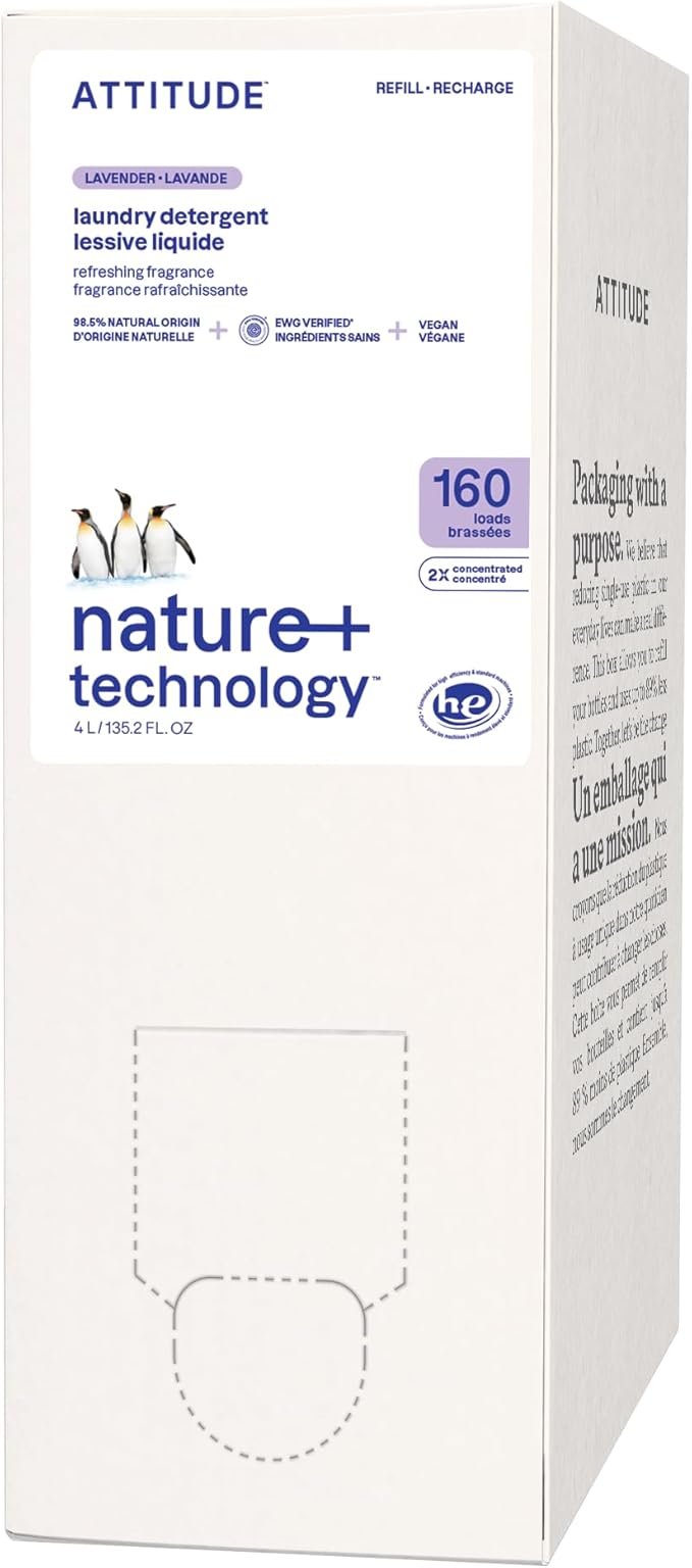 ATTITUDE Liquid Laundry Detergent Refill, EWG Verified, HE Compatible, Plant-Based & Vegan, Natural Laundry Soap, Lavender Scent, 160 Loads, 135.26 Fl Oz