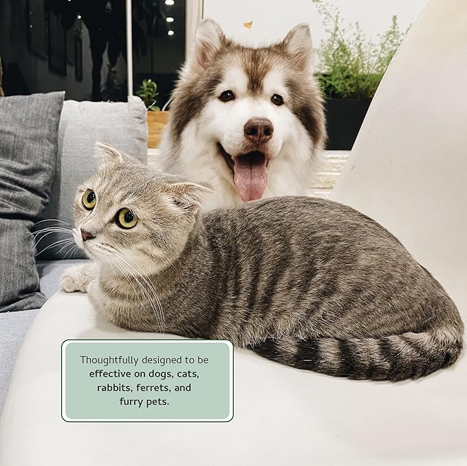 - Soothing & Conditioning - The biobased dog deodorant formula contains natural conditioners that effectively moisturize and nourish the skin and coat, detangling and softening your pet’s fur. Natural essential oil infused with a refreshing baby powder aroma that provides a sense of calm and comfort for you and your pets. Safe for pets and humans, Cruelty-Free, Leaping Bunny Certified, and made in the US with globally sourced components