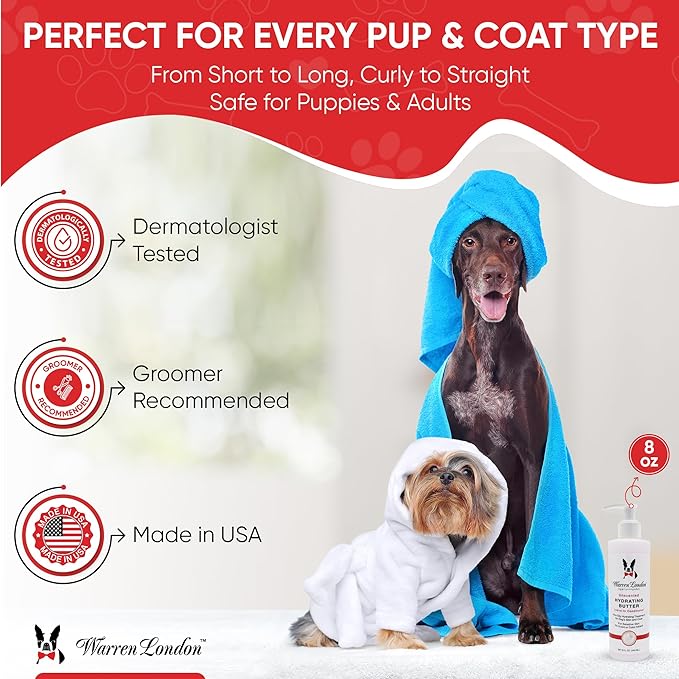 Warren London Hydrating Butter Leave in Pet Conditioner for Dogs | Lotion for Skin and Coat | Aloe Puppy & Dog Conditioner for Hair Detangler, Dry Skin, & Dandruff | Unscented 8oz