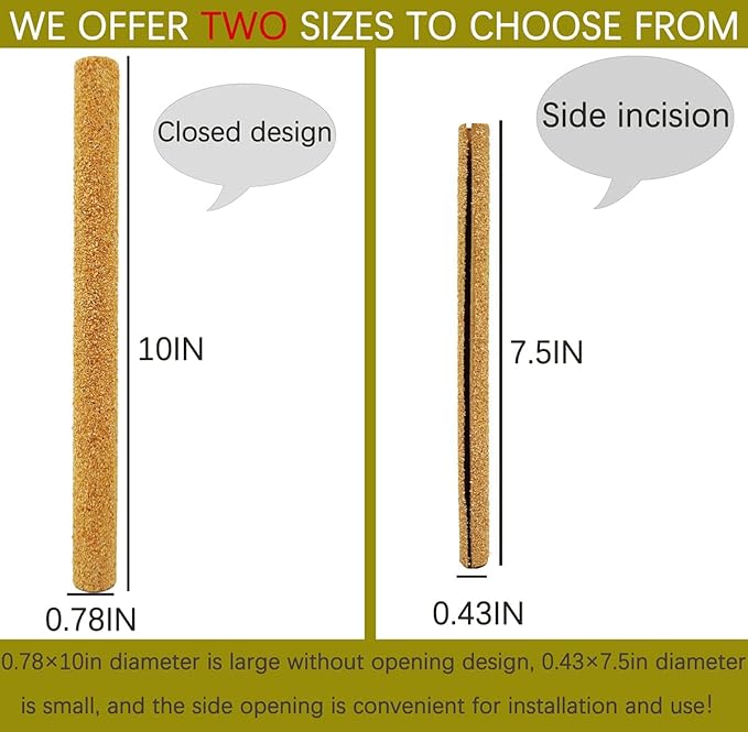 - 🦜【FITS 3/4” DIAMETER PERCHES】 Length=10"Long x0.78"Diameter(25cm x 2cm),fit 0.5" - 0.75" diameter perches(Can also be used alone), and come together as a 12 Pack. They're designed for Parakeets, Lovebirds , Parrotlets, Finches, Canaries, and other small birds.