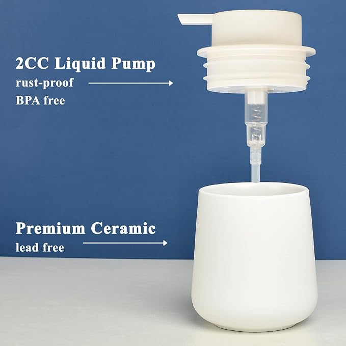 - Ceramic Hand Soap Dispenser: White lotion dispenser is made from premium ceramic, lead-free, safe to fill with variety of daily use liquids and is durable and easy to clean, adding elegance and convenience to your home