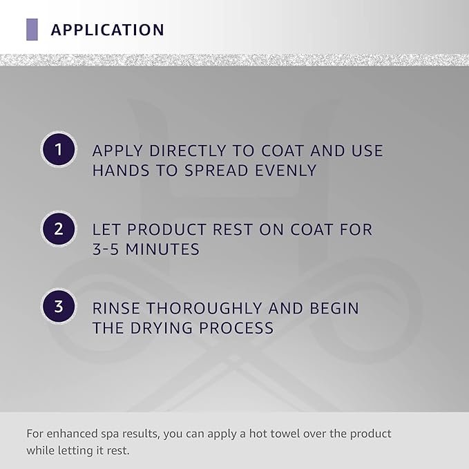 - QUICK & EASY USE: To use, massage this cream rinse for dogs and cats evenly on your pet’s coat and let it rest for 3–5 minutes. Then rinse your pet thoroughly and dry them off. For enhanced spa results, apply a hot towel over the product while it rests.