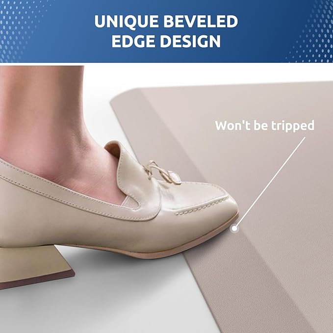 KitchenClouds Kitchen Mat Cushioned Anti Fatigue Kitchen Rug 0.8inch Waterproof Non Slip Kitchen Rugs and Mats Standing Desk Mat Comfort Floor Mats for Kitchen Sink Office (17.3"x60",Khaki)