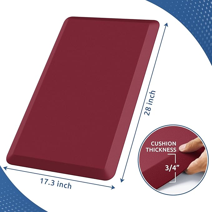 KitchenClouds Kitchen Mat Cushioned Anti Fatigue Kitchen Rug 0.8inch Waterproof Non Slip Kitchen Rugs and Mats Standing Desk Mat Comfort Floor Mats for Kitchen Sink Office (17.3"x28", Red)