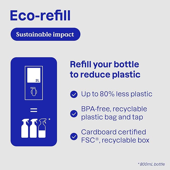 - ECO-FRIENDLY REFILL: This shower tile cleaner refill comes in FSC-certified, recyclable cardboard—designed to reduce plastic waste. Refill your bottles again and again for a more sustainable, low-waste cleaning routine.