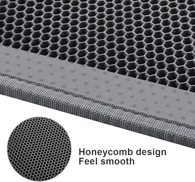 - Anti Tracking EZ Open Edge Litter Mat: Double-layer honeycomb design helps you gather the litter. You just pick up the mat and all the litter falls through and then dump it back in the litter box make it recycling. No more getting litter stuck to my feet on a daily basis! Large holes is large enough to catch and trap litter. Suitable for lots of type of litter, and kitty litter boxes,hooded,self cleaning litter box.