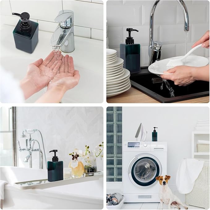 - Multi-Purpose - Our refillable pump bottle dispensers can be use to store a variety of liquids, like shampoo, conditioner, shower gel, lotion, body moisturizer, creams, massage oil, hair oil, liquid soap, hand soap, face wash, dish soap and so on.Perfect for bathroom, bedroom, office, kitchen sink, travel, vacation and daily use.